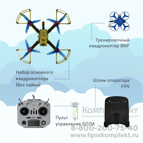 Образовательный комплект предназначен для изучения основ разработки и пилотирования беспилотных летательных аппаратов (БПЛА) типа "Квадрокоптер". Пройдя поэтапное обучение с использованием образовательного комплекта, учащиеся приобретут следующие навыки: сборка, настройка и пилотирование беспилотным летательным аппаратом.