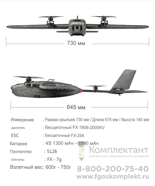 Что входит в комплект конструктора учебного БПЛА самолетного типа VTOL EDU