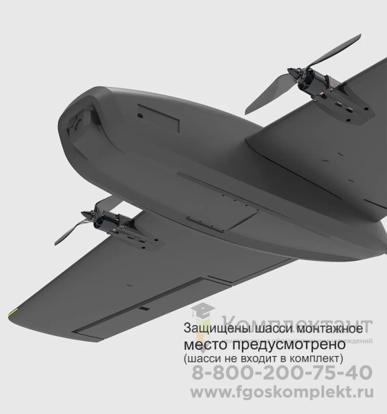 Конструктор БПЛА самолетного типа VTOL представляет собой конструктор БАС в виде планера, оснащенного системой вертикального взлета за счет дополнительной мультироторной системы.