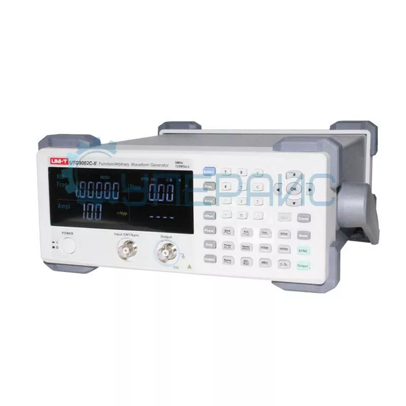 Цифровой генератор частоты UTG9002C-II синтезирует прямоугольные, синусоидальные, пилообразные, импульсные сигналы. Кроме этого возможна генерация наклонной кривой роста напряжения, DC, белый шум.