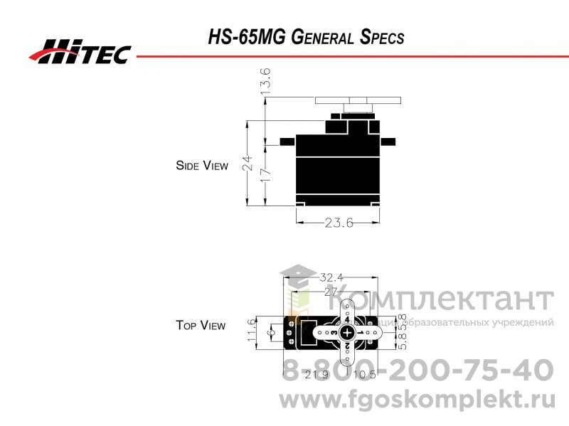 На сайте интернет-магазина fgoskomplekt.ru вы сможете найти широкий ассортимент сервоприводов от Hitec RCD. Это известный южнокорейский производитель систем радиоуправления. Компания производит различную электронику и робототехнику. Мы предлагаем купить сервопривод Hitec HS-65MG от этого мирового бренда. С ним вы получите еще больше функциональных возможностей вашего устройства.