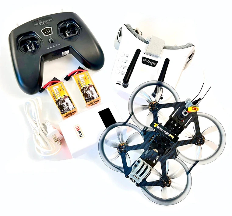 Набор включает в себя все необходимые компоненты для сборки квадрокоптера, включая раму, моторы, электронику, камеру и вещательное оборудование. Также в комплекте идет пульт управления, аккумулятор, зарядное устройство и даже запасные пропеллеры.
