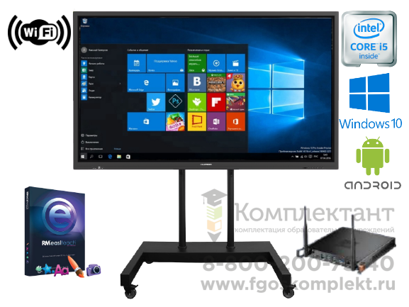 «Все в одном» - Интерактивная панель с мобильной стойкой Lumien 65, 4K, Android 8.0, OPS ПК Core i5 Windows 10 Pro - интерактивный многофункциональный комплекс, отвечающий современным требованиям технологий, является неотъемлемой частью информационно образовательной среды современных образовательных учреждений.