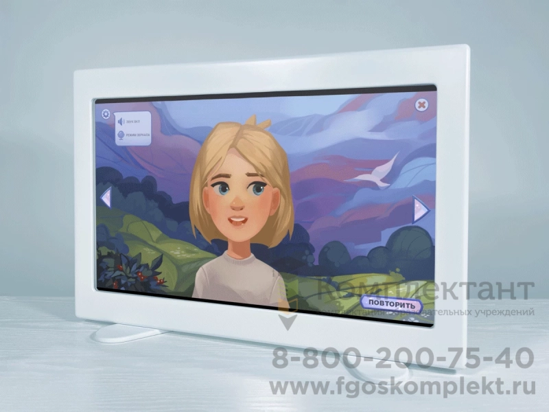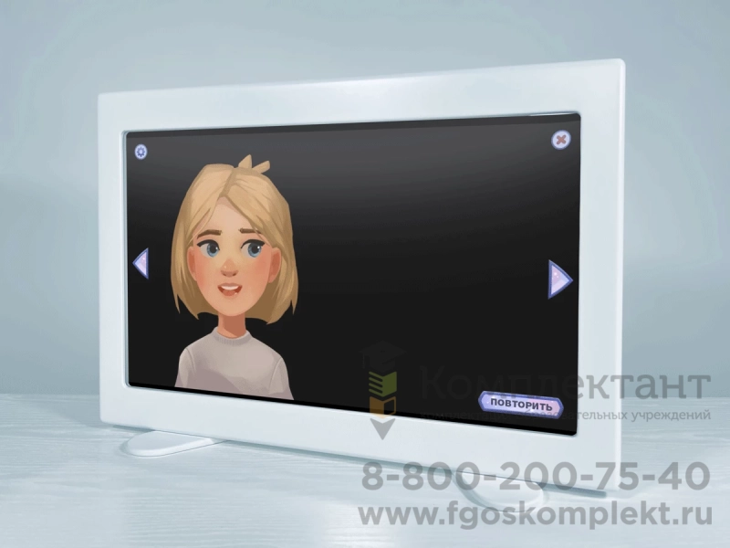 ПО устанавливается на ваш компьютер/ноутбук, а сенсорный экран для занятий подключается как монитор. Благодаря тому, что экран имеет уникальные зеркальные свойства, обучающийся видит и задание, которое надо выполнить, и то, как у него это получается. Особенно это пригодится при работе с инновационным интерактивным комплексом по артикуляционной гимнастике.