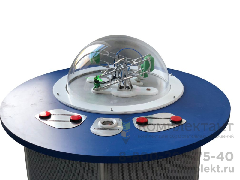 Данный экспонат состоит из акриловой колбы заполненной водой. Колба удерживается пространственной стальной рамой с основанием из стального листа.
