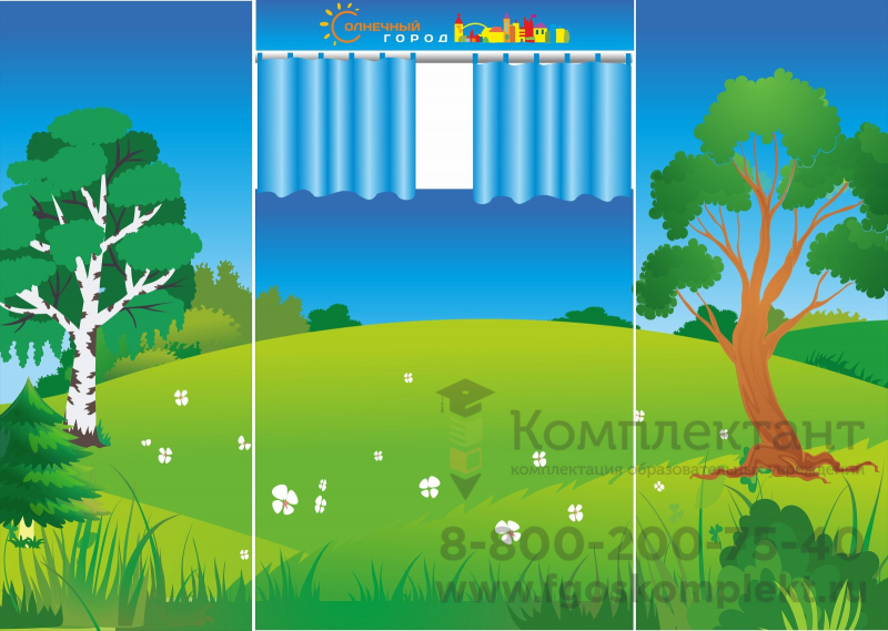 • мобильную декорацию с быстросменными фонами (идут в наборе поставке) — 2305 * 2600 мм;