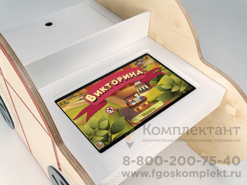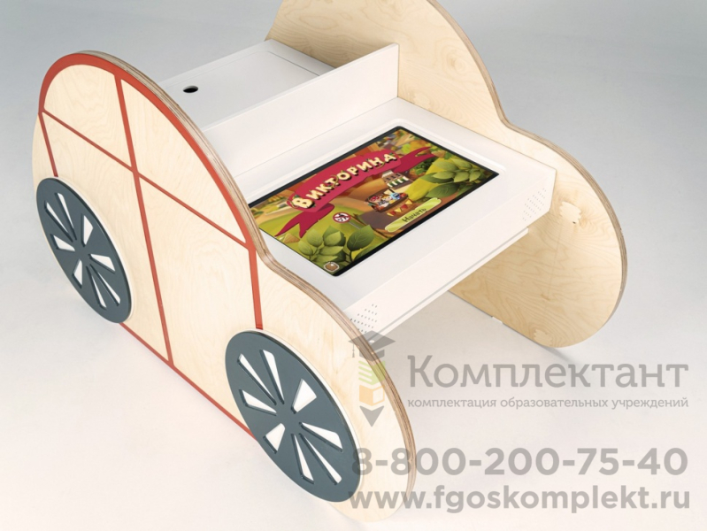 Методический интерактивный комплекс «Машинка» представляет собой многофункциональное игровое пространство с двумя зонами: зоной конструирования и интерактивной панелью для занятий.