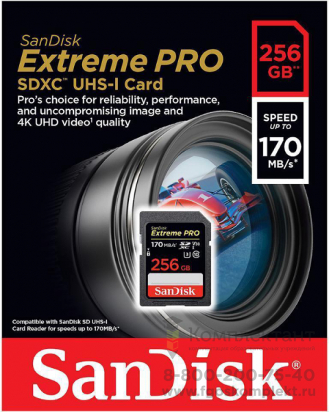 Карта памяти SanDisk Extreme Pro SDXC UHS Class 3 V30 170MB/s 256GB