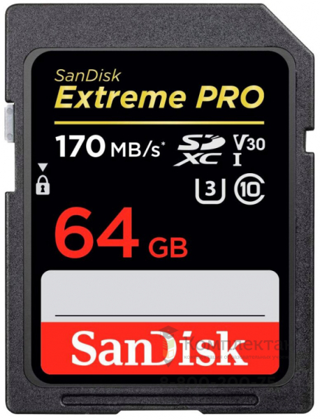 Карта памяти SanDisk Extreme Pro SDXC UHS-I Class 3 V30 170MB/s 64GB
