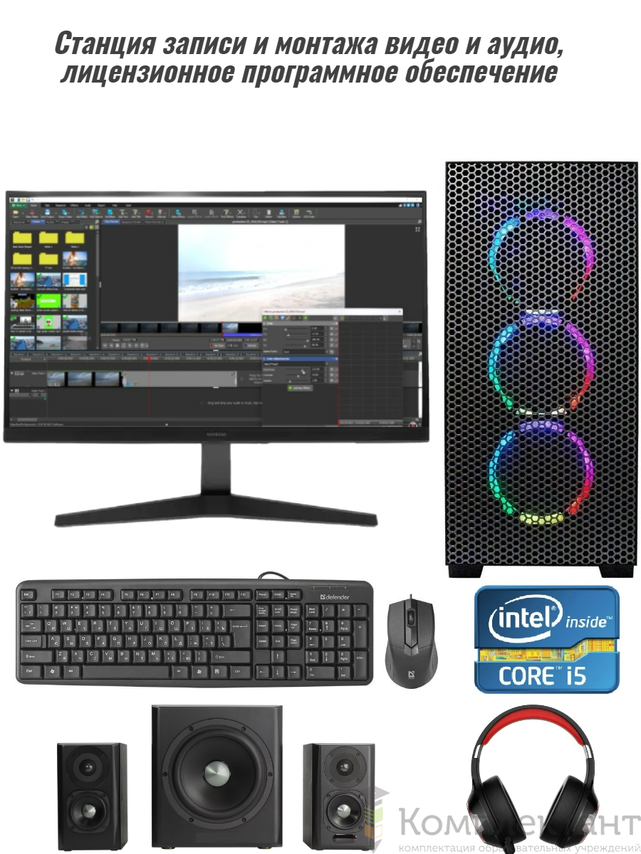 Профессиональный компьютер с системой видеомонтажа и редактирования звука, программное обеспечение
