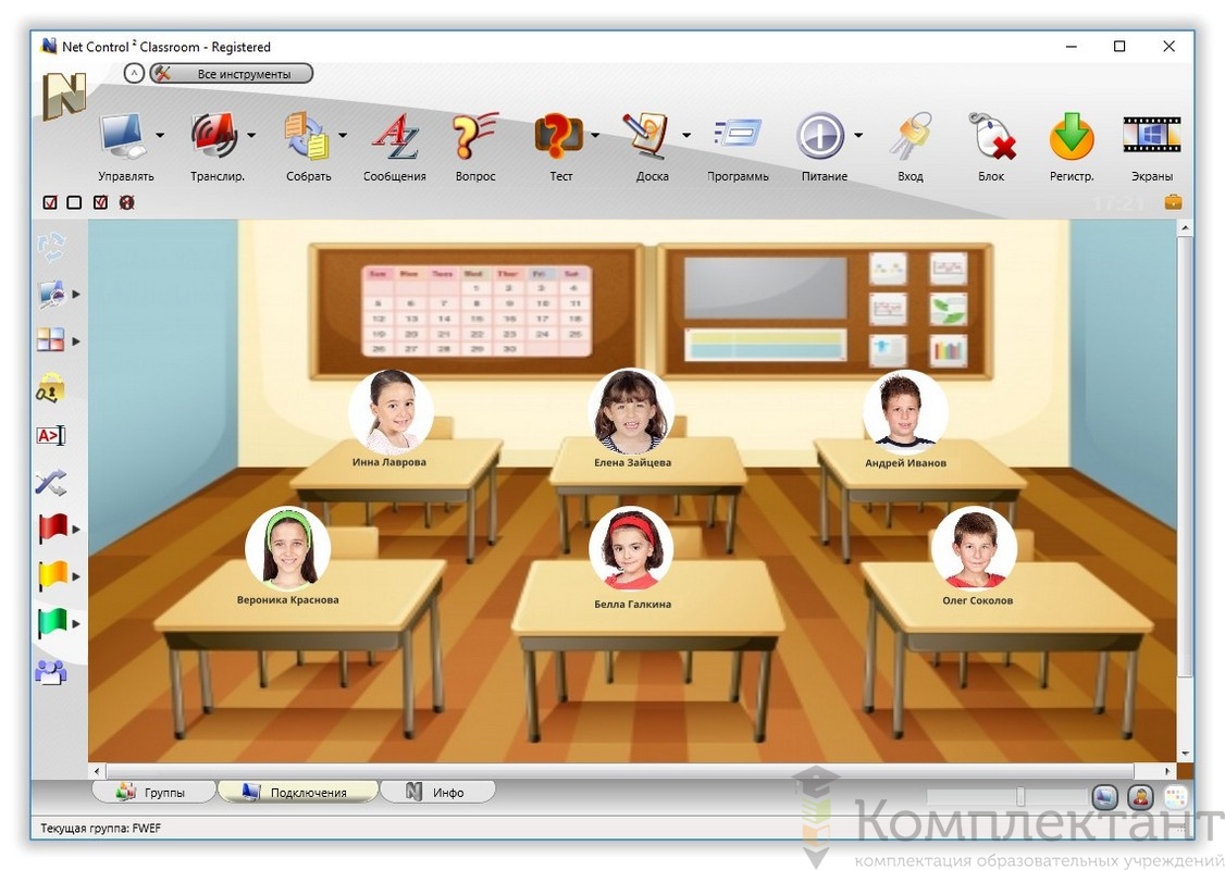 • Совместная работа: воспроизведение мультимедийных файлов синхронно с учащимися, совместный просмотр веб-страниц, возможность открывать необходимые документы и приложения на компьютерах учащихся