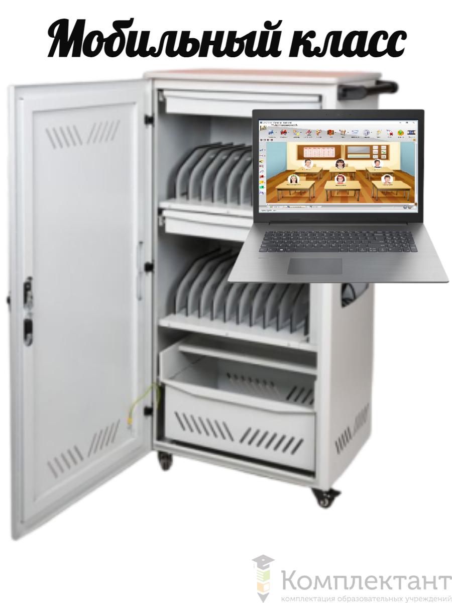 Мобильный компьютерный класс MOBICLASS - это современное решение для организации единой компьютерной среды в пределах одного класса, офиса, небольшой организации или её отдела. Мобильный класс состоит из портативных компьютеров учащихся и преподавателя, мобильной станции MOBICLASS с мягкими ложементами и встроенной беспроводной системой, предустановленного программного обеспечения и прочего вспомогательного оборудования в зависимости от решаемых задач.