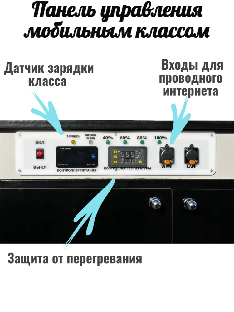 • В мобильном компьютерном классе нет проводов, поэтому не за что случайно зацепиться и получить травму или испортить оборудование - это особенно важный момент для младших школьников