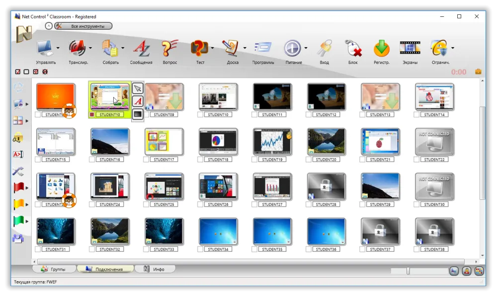 • Мониторинг учащихся в режиме реального времени с возможностью просмотра компьютеров учащихся