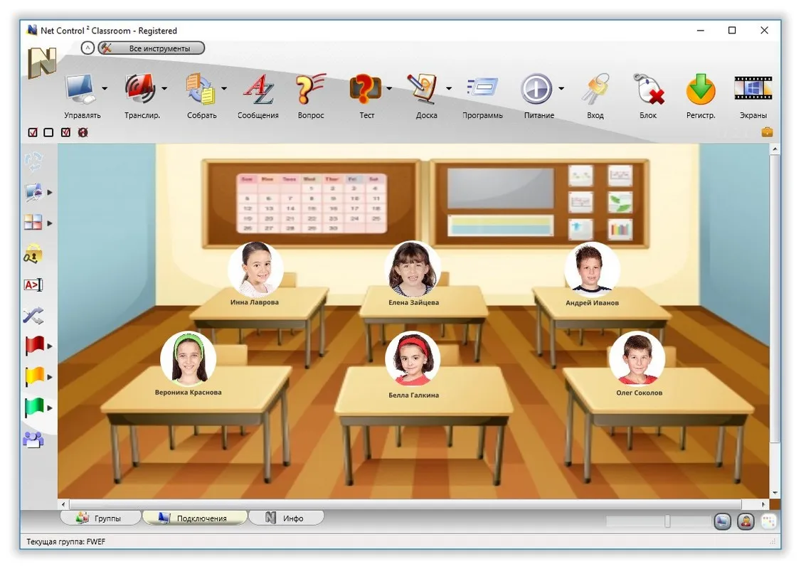 • Совместная работа: воспроизведение мультимедийных файлов синхронно с учащимися, совместный просмотр веб-страниц, возможность открывать необходимые документы и приложения на компьютерах учащихся.