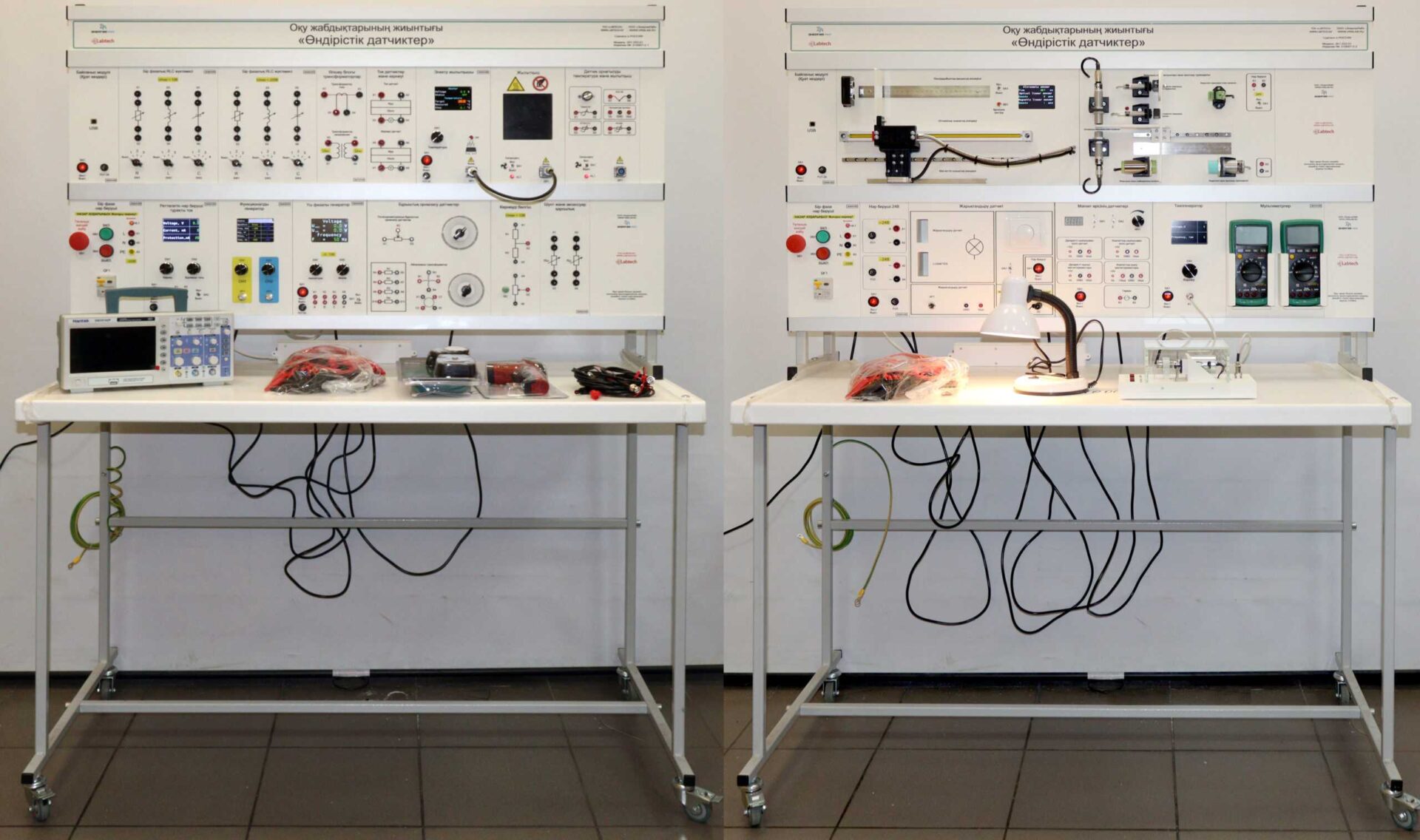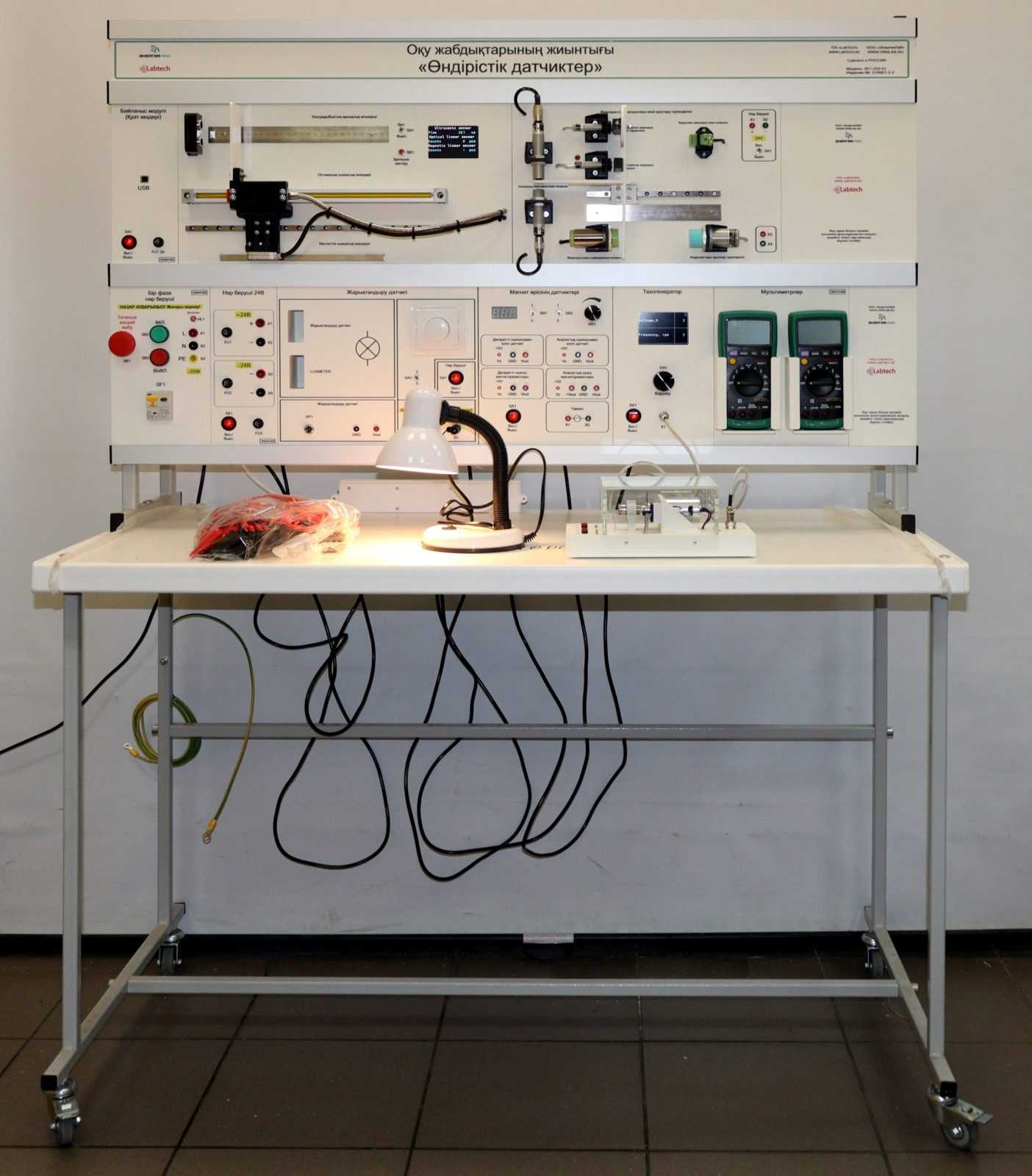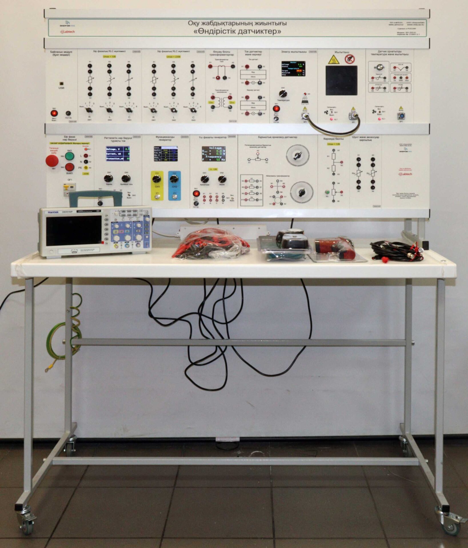 Комплект лабораторного оборудования выполнен в стендовом исполнении: стойка с модулями установленная на собственном лабораторном столе.