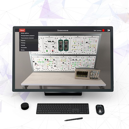 Тренажер предназначен для обучения студентов электротехнических специальностей в высших и средне специальных учебных заведениях, центрах повышения квалификации. Тренажер обеспечивает выполнение лабораторного практикума по дисциплине «Основы электроники», «Схемотехника», «Промышленная электроника». Тренажер представляет собой виртуальный аналог реального учебного стенда «Основы электроники и схемотехники» и позволяет выполнять осмотр стенда в 3D пространстве, собирать схемы и проводить лабораторные работы, входящие в список работ реального стенда.