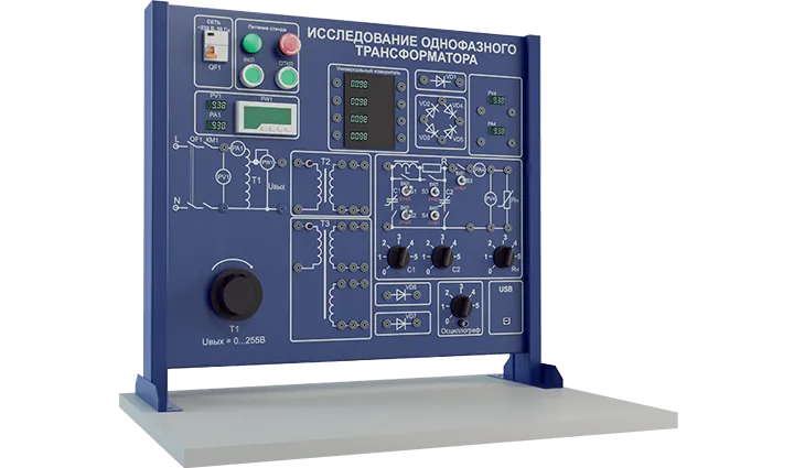 Лабораторная установка по исследованию однофазного трансформатора предназначена для изучения принципов работы и характеристик трансформаторов в образовательных целях. Установка позволяет проводить различные эксперименты, анализировать параметры и визуализировать процессы, связанные с трансформацией электрической энергии. Идеально подходит для учебных заведений и лабораторий.