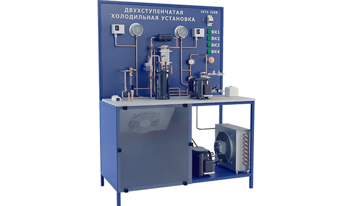 Лабораторная установка по изучению устройства и работы двухступенчатой холодильной установки – эффективное решение для глубокого погружения в принципы термодинамики и практического освоения передовых технологий охлаждения.