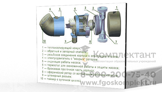 Представляет собой планшет, на котором закреплен насос в разрезе, а также приведена текстовая и графическая информация по его устройству, основных характеристикам и сферам применения.