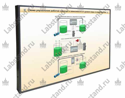 Состав: Стенд планшет «Схема управления работой насосов в зависимости от уровня воды в водосборнике», паспорт.