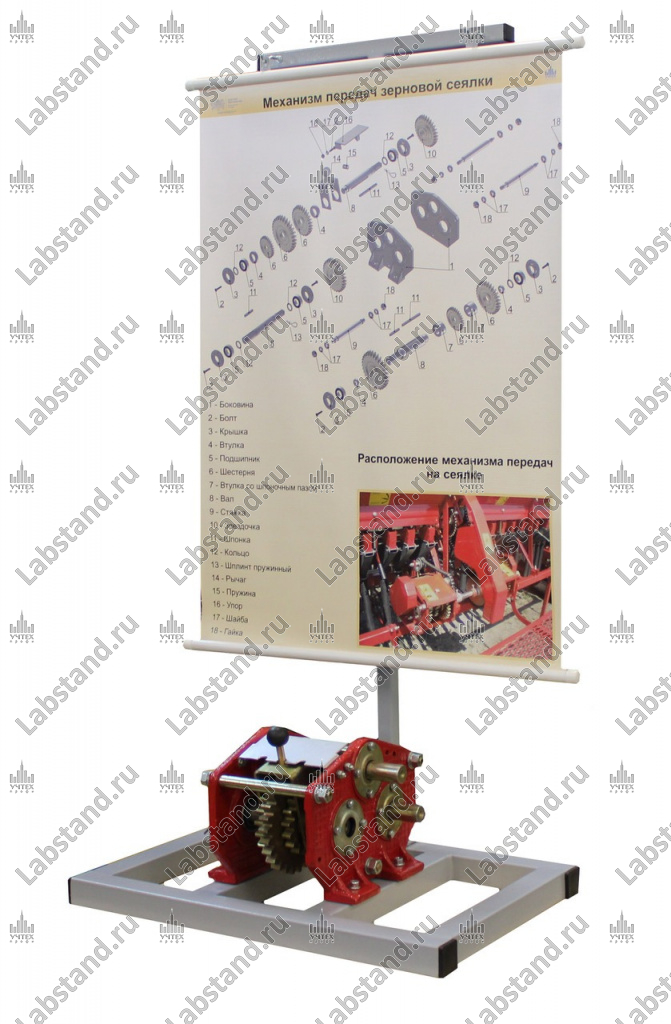 Назначение: Стенд-планшет предназначен для изучения конструкции составных элементов механизма передач сеялки.