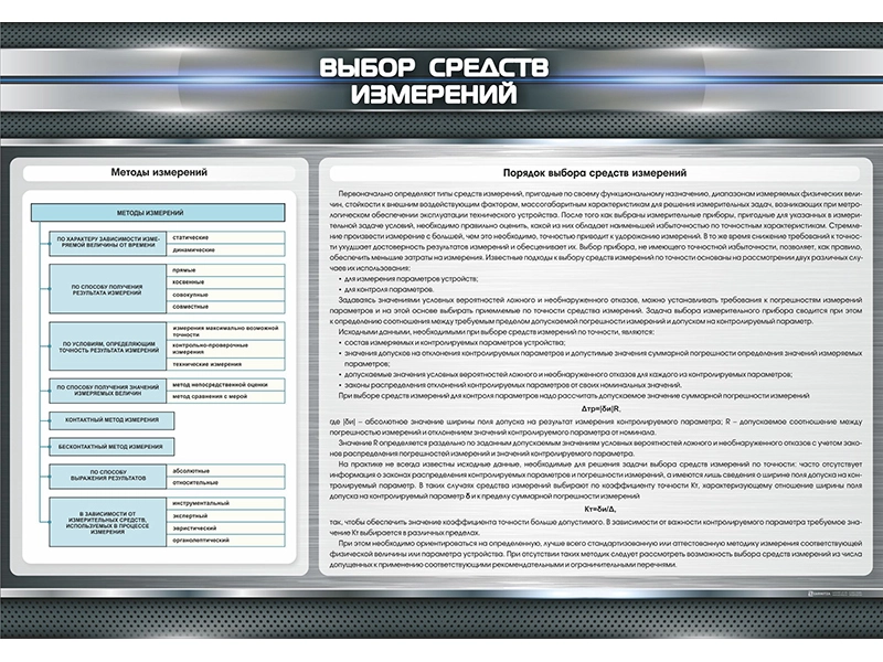 Стенд представляет собой информационную панель, на которой размещена информация о порядке выбора средств измерений.