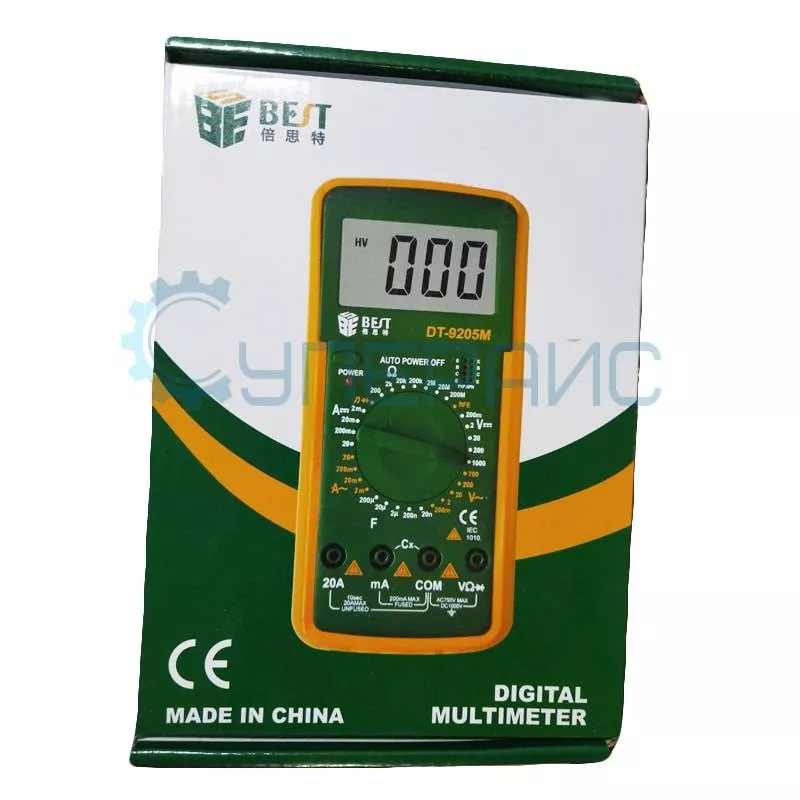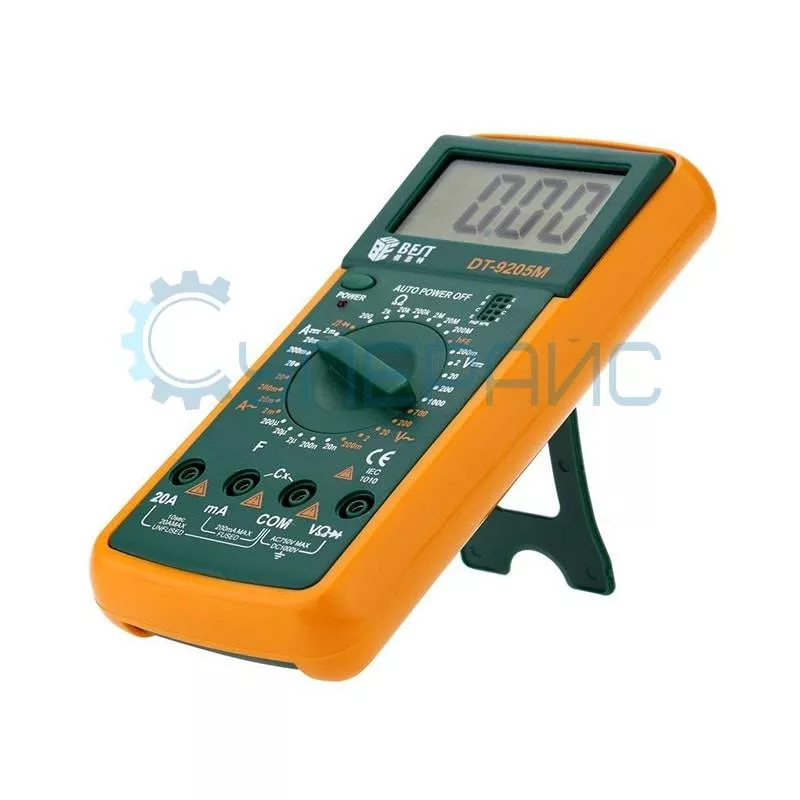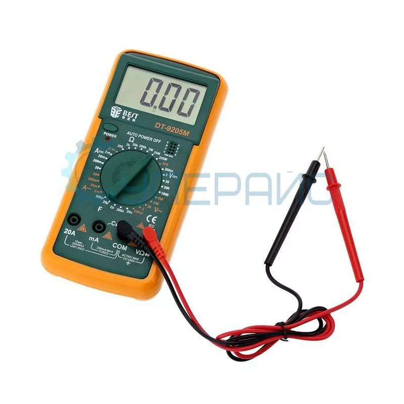 Мультиметр DT9205M компании Best станет отличным средством для поиска неисправностей электромеханического оборудования, электрических цепей и радиоэлементов при ремонте. Он предназначен для измерения напряжения, силы тока, емкости и сопротивления. Кроме этого, тестер оснащен функцией проверки полупроводниковых диодов и показателей усиления биполярных транзисторов. Высокое входное сопротивление не вносит погрешности при замерах и говорит о высокой точности измерительного прибора.