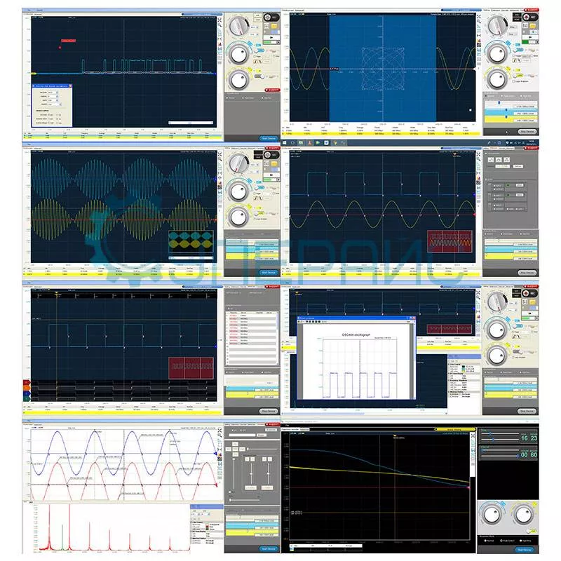 Автоматические измерения максимум, минимум, среднее, среднеквадратичное значение, частота, период, положительная ширина импульса, отрицательная ширина импульса, коэффициент заполнения, время нарастания, значение от пика к пику