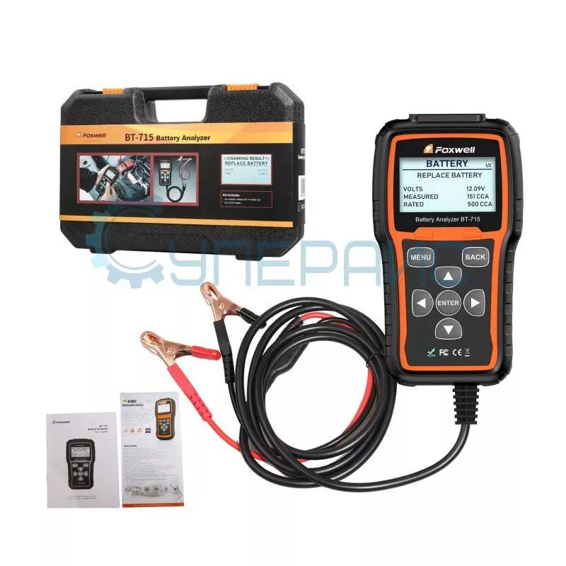 Комплектация | портативный тестер аккумуляторных батарей Foxwell BT-715 – 1 шт |