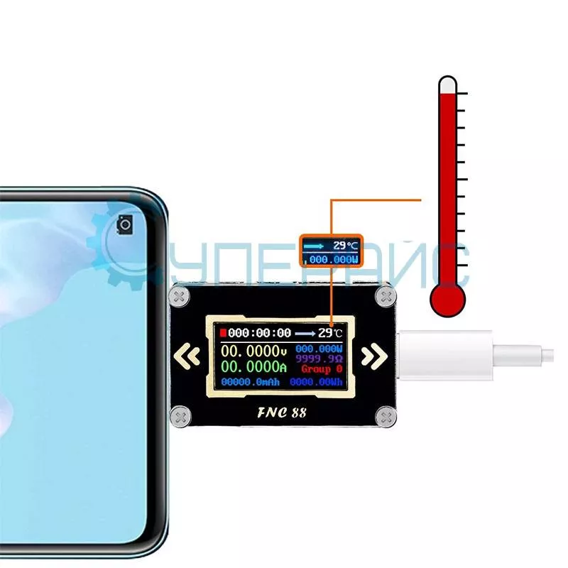 ВНИМАНИЕ! Производство USB измерителя напряжения FNIRSI FNC88 ПРЕКРАЩЕНО. Рекомендуем обратить внимание на альтернативную модель: USB тестер Ruideng UM34 с поддержкой QC2.0 QC3.0