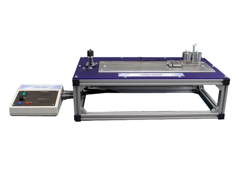 Лабораторный стенд выполнен в виде настольной каркасной конструкции, состоящей из основания с закрепленной на нем лицевой панелью. На лицевой панели имеется возможность установки различных плоских направляющих с помощью крепежных винтов. Стальное тело трения приводится в движение нитью, которая наматывается на барабан, приводимый в движение электроприводом. На тело трения может устанавливаться дополнительный груз для увеличения силы трения. Сила трения определяется тензометрическим датчиком с электрическим выходным сигналом. Скорость движения тела трения определяется по частоте вращения барабана. Конечные положения тела трения контролируются бесконтактными индуктивными датчиками. Значения силы трения и скорости движения отображаются на цифровых индикаторах.