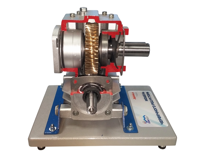 Модель на подставке предназначена для демонстрации принципа действия червячной передачи и конструкции червячного редуктора, обеспечивает визуальное ознакомление с элементами червячной передачи (червяк и червячное колесо), с конструкцией корпуса, подшипниковых узлов.