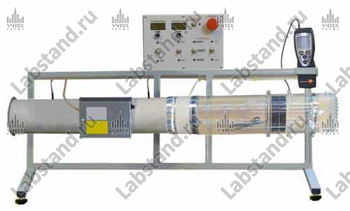 Состав: металлическая рама; осевой вентилятор; теплоизолированный канал с установленным внутри нагревателем; анемометр для измерения скорости воздуха; датчик температуры воздуха 2шт.; электрический блок управления.