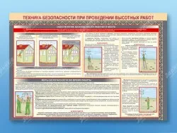 Стенд представляет собой панель, на которой размещена информация о технике безопасности при проведении высотных работ.