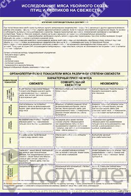 Стенд на баннерной основе "Исследование мяса убойного скота, птиц и кроликов на свежесть" - 2 части