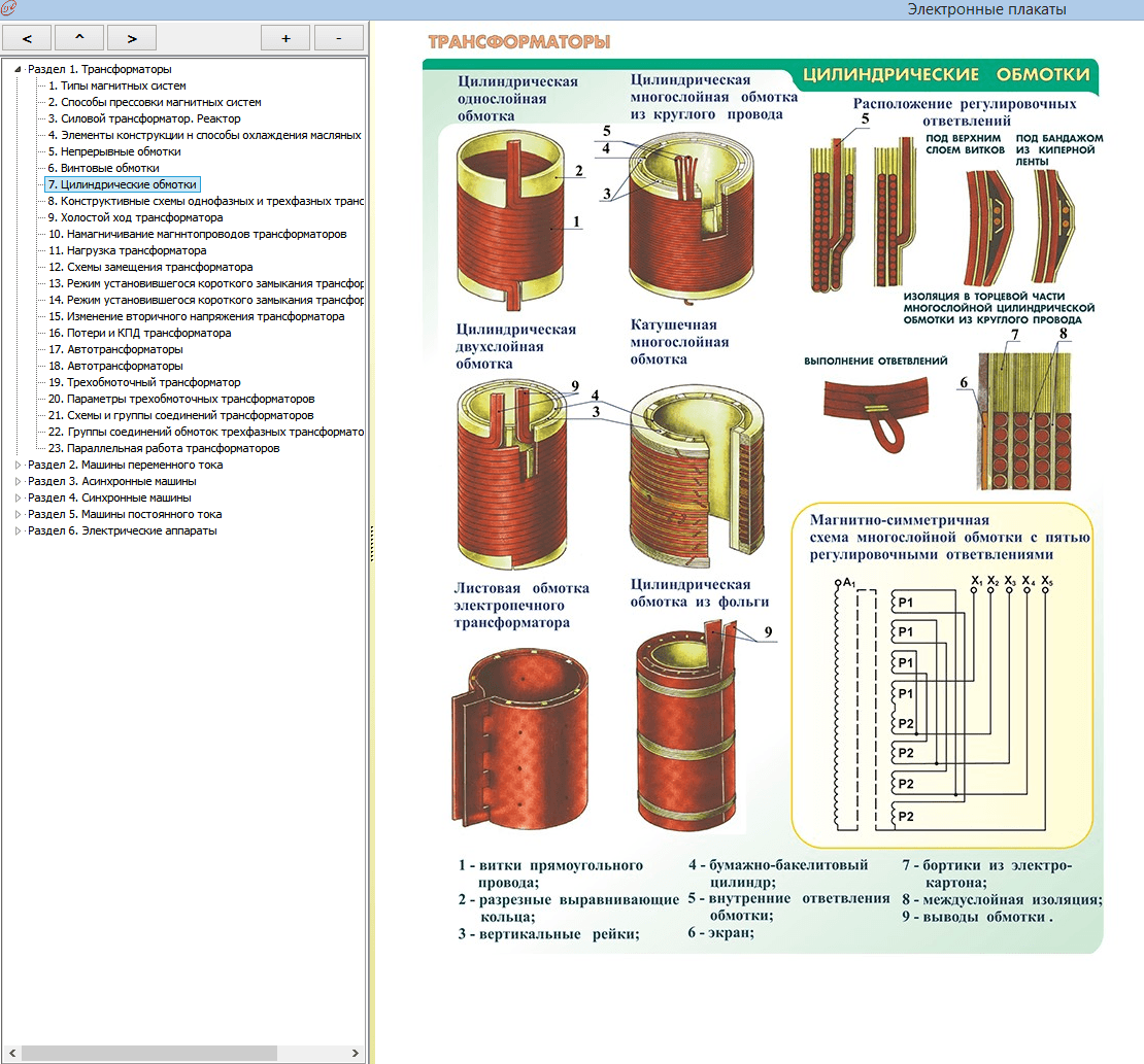 Электронные плакаты «Электрические машины» выполнены в виде электронной книги, в которой имеются графические элементы и текстовые описания по разделам: