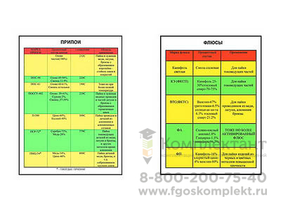 Плакаты ПРОФТЕХ «Припои, флюсы» (2 шт., винил, 70х100) – наглядное пособие для учебных заведений и мастерских, обеспечивающее качественное обучение и профессиональную подготовку специалистов.
