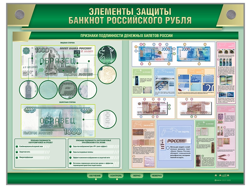 Стенд электрифицированный "Элементы защиты банкнот российского рубля"