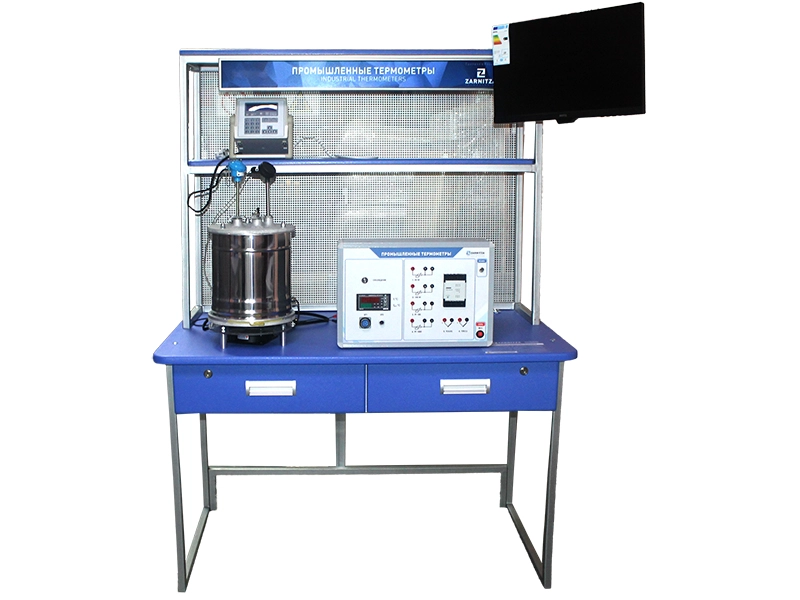 Комплект учебно-лабораторного оборудования (далее - стенд) "Промышленные термометры" предназначен для проведения лабораторных работ по ознакомлению студентов с конструкцией и принципом действия различных промышленных термометров, схем их включения, а также определению статических и динамических характеристик термометров, используемых в качестве датчиков температуры в системах автоматического регулирования.