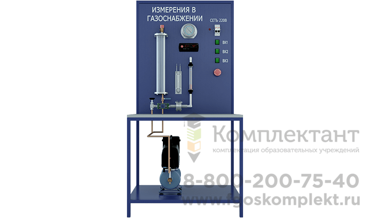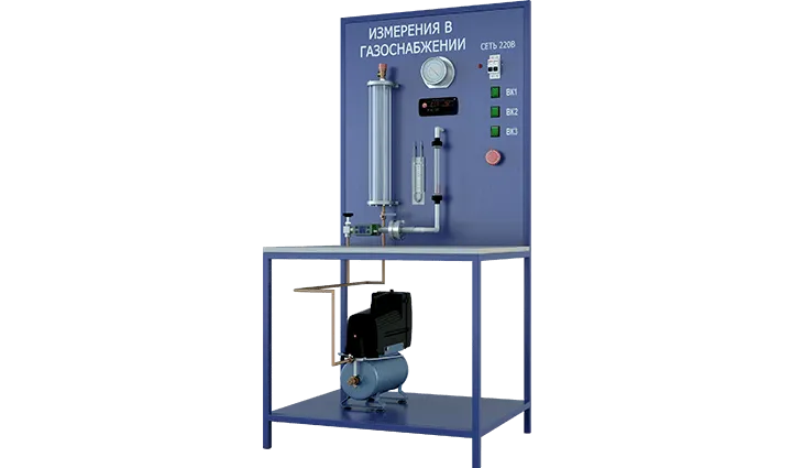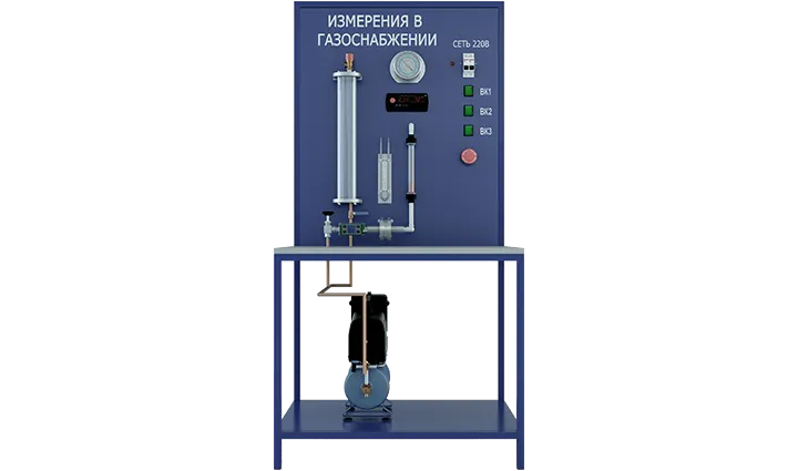 Лабораторная установка по изучению методов измерения давлений, расходов и температур в системах газоснабжения. Изучайте передовые технологии в области газораспределения и контроля параметров газа с помощью этого современного оборудования.