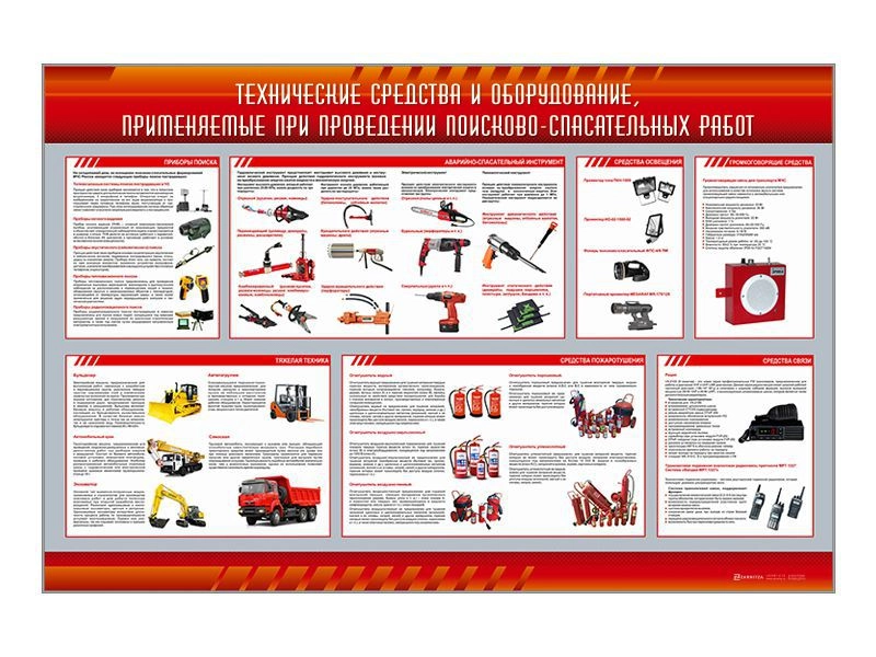 Стенд "Технические средства и оборудование, применяемые при проведении поисково-спасательных работ"