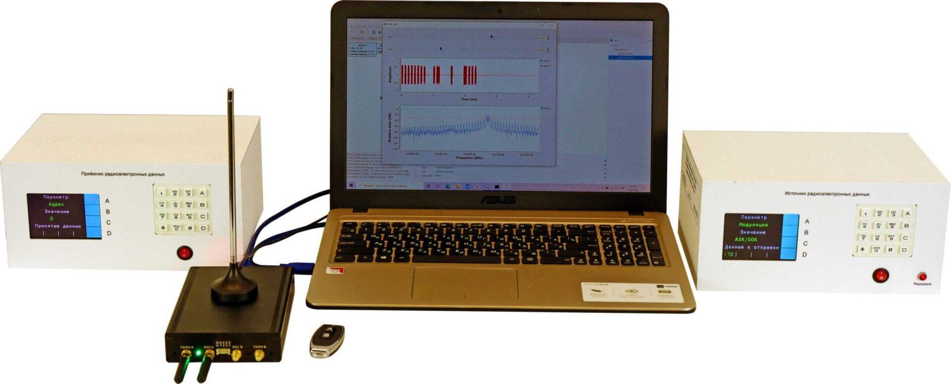 Лабораторный комплект «Перехват, подавление, подмена радиоэлектронных данных» предназначен для разработки прототипов радиоэлектронных устройств, изучения принципов перехвата, подмены и подавления радиоэлектронных данных