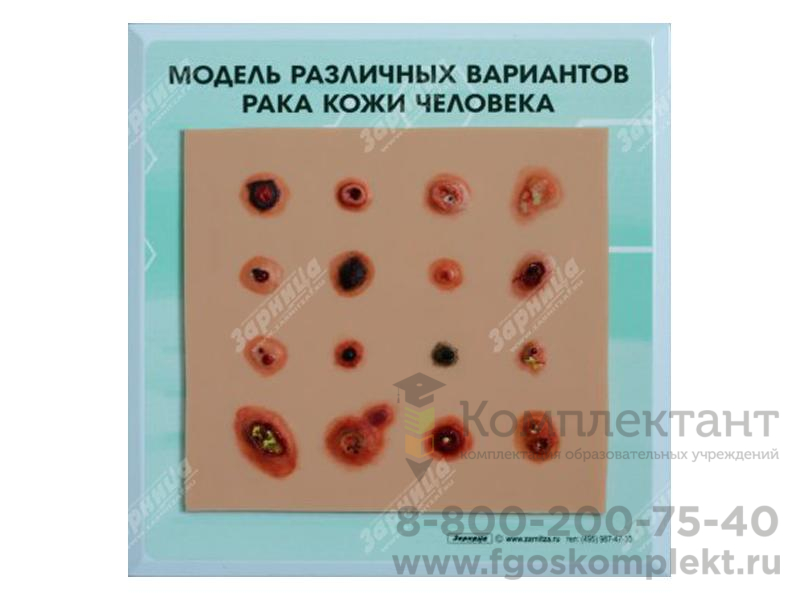 Учебно-демонстрационное пособие представляет собой планшет с расположенными на нем анатомическими моделями основных видов рака кожи на разных стадиях развития заболевания.