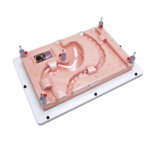 - на одной платформе размещены полые модели желудка с двенадцатиперстной кишкой, пищевода и фрагмента толстой кишки