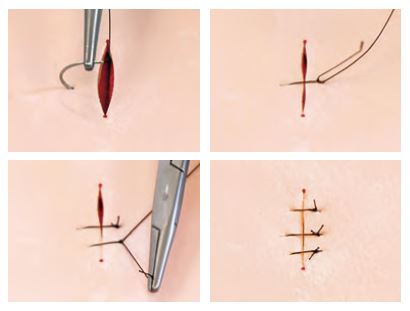 • набор имитированных кожных лоскутов с нанесенным разрезом для наложения трёх узловых швов