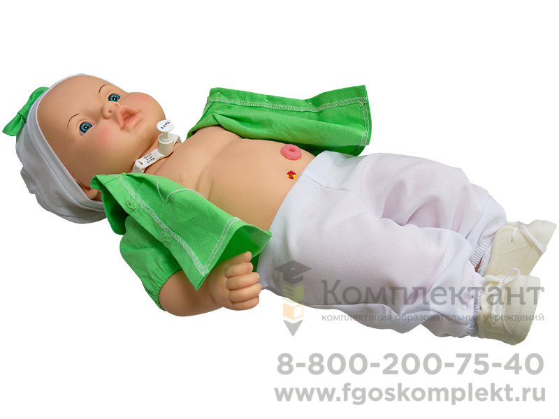 Фантом представляет собой модель месячного ребенка из мягкого материала имитирующим тело младенца с подвижной головой, руками и ногами, и позволяет отрабатывать навыки специального ухода.