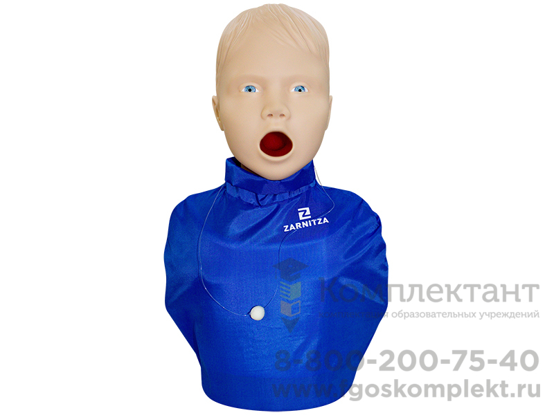 Манекен ребёнка предназначен для отработки практических навыков (в рамках программы первичной аккредитации по специальности "Педиатрия" для станции "Экстренная медицинская помощь") и представляет собой имитацию торса ребёнка 3 лет с головой, с возможностью отработки приёмов удаления инородного тела из верхних дыхательных путей (приёма Геймлиха).