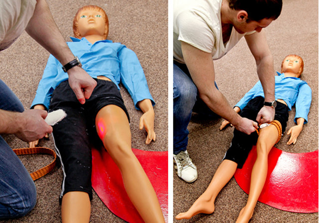 Отработка навыков наложения кровоостанавливающего жгута на бедренную артерию
