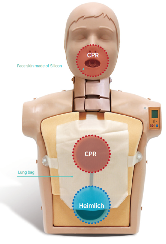 • На тренажере возможна отработка компрессий грудной клетки и приема Геймлиха